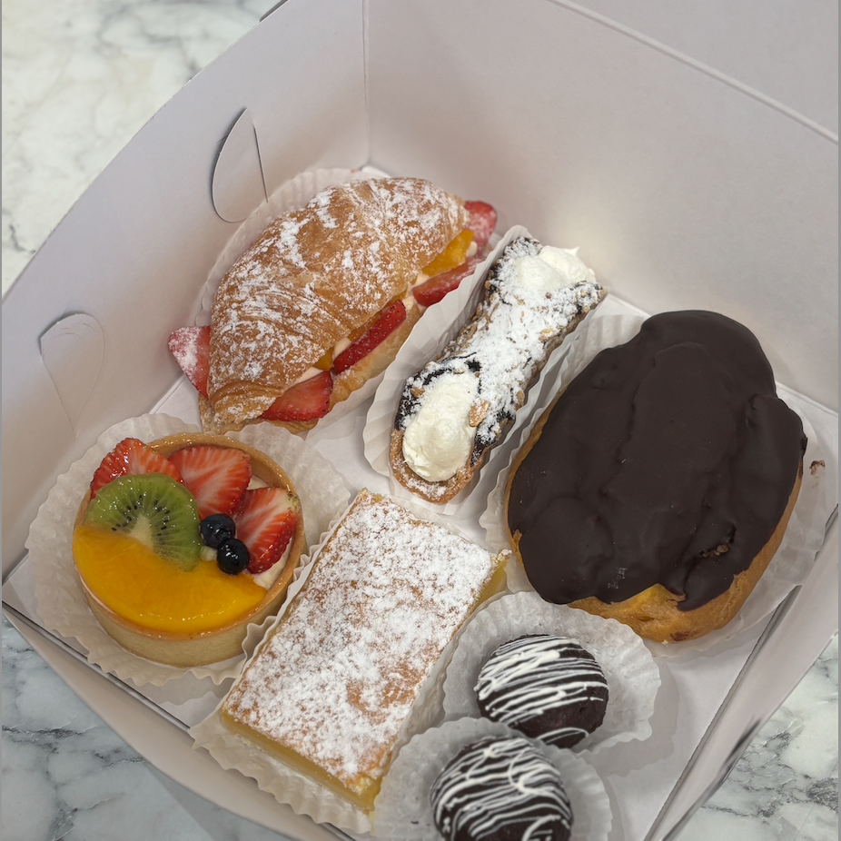 Top 7 customer favorites, contains: 1 Cannoli, 1 Chocolate Eclair, 2 Chocolate Truffle Balls, 1 Fresh Fruit Croissant, 1 Fresh Fruit Tart and 1 Lemon Bar